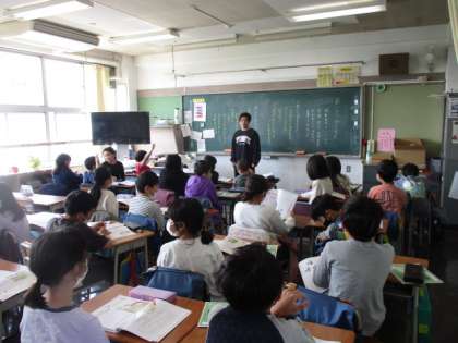 1組の授業は道徳です。あいさつについての学習です。教室に入ると、「校長先生がいらっしゃったよ。どういうあいさつをする?」と、担任の先生からの声掛けです。すると、一人の人が出てきて代表として、気持ちのよいあいさつをしてくれました。