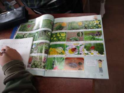 今日は、あいにくの雨のため、教科書を見て学習を進めています。身のまわりにある生き物は、どのようなものがあるか、どのように分けることができるかを話し合っていました。