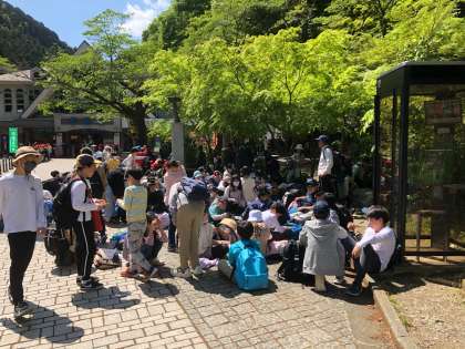 午前中のスタート場所、ケーブルカー乗り場まで戻ってきました。下り坂は思ったよりもきつく、膝が痛い感じです。子どもたちにも、少し疲れが見えます。しかし、元気な子どもたちです。