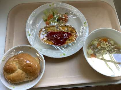 セサミパン・スペイン風オムレツ・ツナサラダ・マカロニスープ