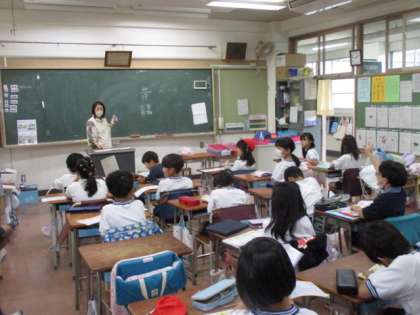1組の授業は国語です。漢字の学習をしています。学習する漢字を使った言葉を子どもたちがあげていきます。思いもしなかったような熟語があがり、びっくりしました。