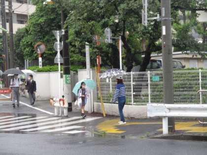 交通安全運動として、子どもたちの登校時刻に、今日も保護者の皆さんが立ってくださっています。雨の中、ありがとうございます。