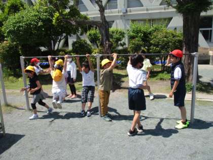 昼休みになり、子どもたちが校庭に出てきました。一緒に鉄棒をやっていると、懸垂逆上がりができる人がいました。自分の身体を持ち上げ、そして、逆上がりをするなんて、びっくりです。子どもたちのいろいろな能力に感心してしまいました。