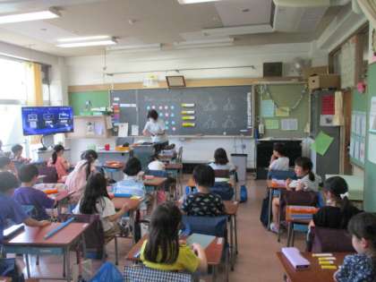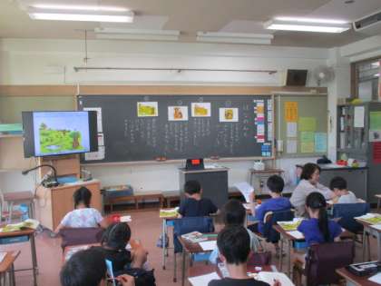 2組の授業は国語です。「はなのみち」の学習です。とてもいいお話です。1年生の保護者の方は、子どもたちと一緒に読んでみてください。