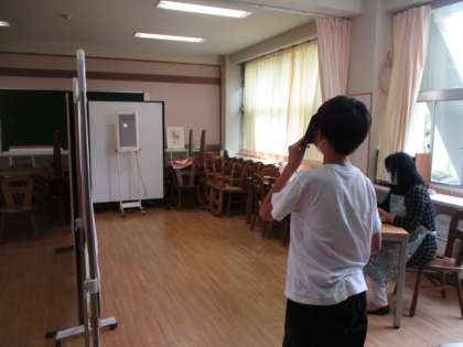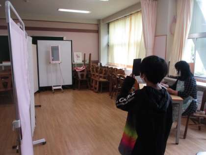 6年生は視力検査をしていました。視力が落ちてしまうと大変です。眼を大切にしてほしいと思っています。
