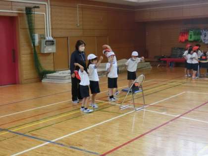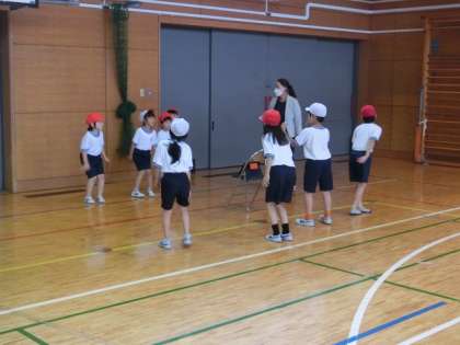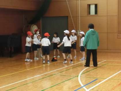 体育館では、2年生と1年生が運動会の演技の練習をしていました。全体で踊ったり、グループで踊ったりしながら練習をしていました。子どもたちはとても楽しそうです。