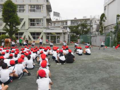 1時間目は、運動会の全体練習でした。開会式、閉会式、応援、全体競技などを行いました。6年生がリーダーとなり、それぞれの役割を果たそうとがんばっています。1年生にとっては、初めての運動会。練習を積み重ねる中で多くのことを学習しています。