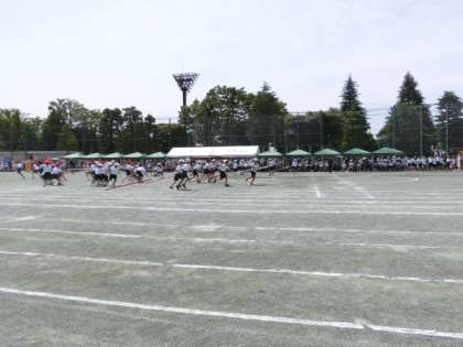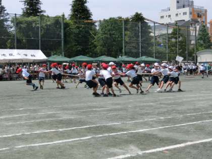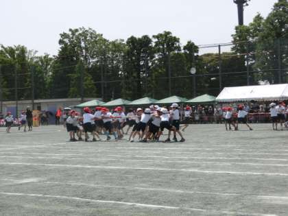 3年生による団体競技です。棒引きです。最後の方に残った棒は、たくさんの人での引き合いになります。見ていても力が入ってしまいます。