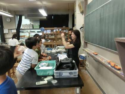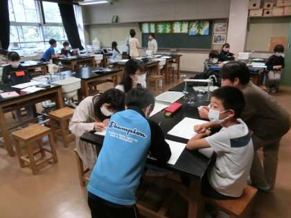2組の授業は理科です。ものが燃える時には、どのような変化があるかの実験です。