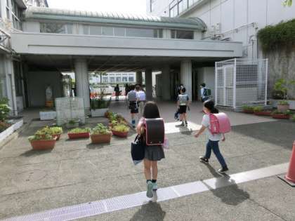 シャツ1枚・短パンで登校してくる子どもたちがとても多くなっています。熱中症だけは、気を付けさせたいです。