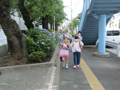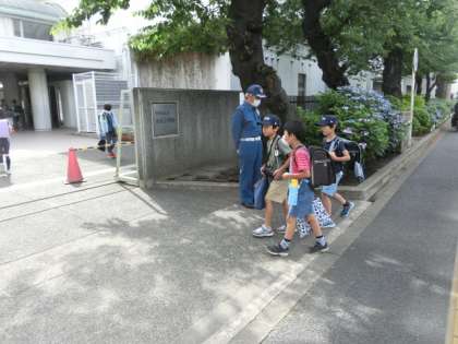 子どもたちが登校してきました。今日はとても蒸し暑い朝です。