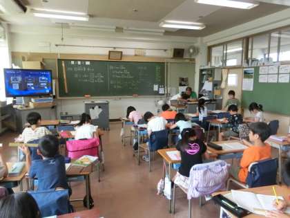 1組の授業は算数でした。各自プリントで、問題を解いています。みんな静かに取り組んでいます。