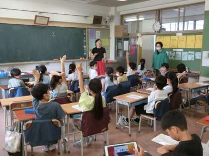 2組の授業は日本語でした。四季についての学習です。四季のイメージをみんなにもってもらうことから、学習はスタートしていました。