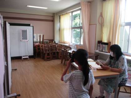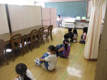 順番を待っている子どもたちは、静かに座って待っていました。静かな検査会場です。