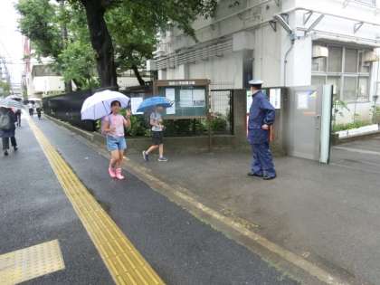 今日も池尻交番のおまわりさんが登校を見守ってくれていました。