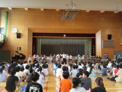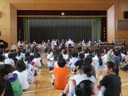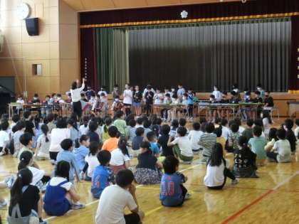 6年生はたくさんの人の前で、演奏することを楽しみ、そして、見ている学年は、6年生の奏でる演奏に聴き入っていました。