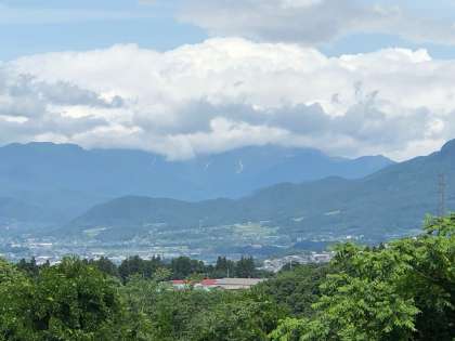 赤城高原サービスエリアで最後の休憩です。高原なので空気が爽やかです。遠くに見える山々には、まだ雪が残っています。