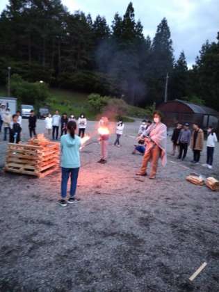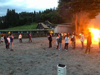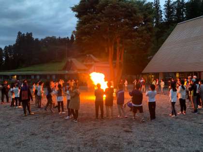 キャンプファイヤーが始まりました。火の精役の子どもたち、キャンプファイヤー係の子どもたち、大活躍です。