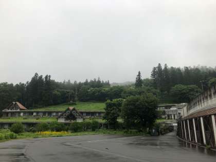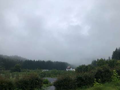 今日の天気です。今は雨はやんでいますが、今にも小雨が降りだしそうな天気です。