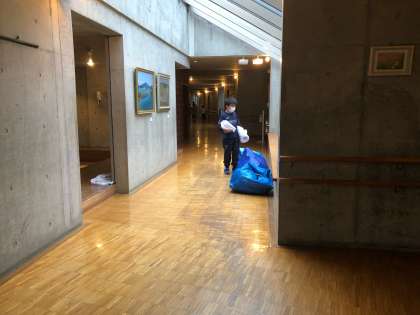 6時になりました。起きる時間です。あまり寝られなかったと言っている人もいました。目をこすりながらシーツの片付けに来る人もいます。