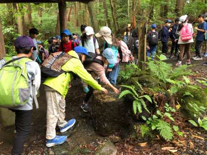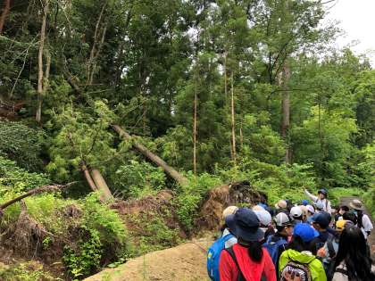 村めぐりの様子です。川場には湧き水の出るところがたくさんあります。台風で倒れたのでしょうか。倒木がありました。