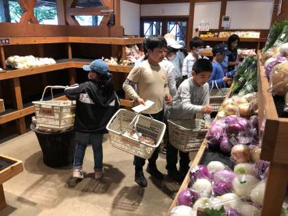昼食の後は、田園プラザでのお土産タイムです。玉ねぎ150円安くない?こんなに大きいブロッコリー200円すごくない?子どもたちが言っています。川場のブランド米、雪ほたかを買っている人もたくさんいました。