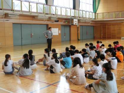 校長先生の話や代表児童の言葉、そして、担任の先生からの諸注意がありました。