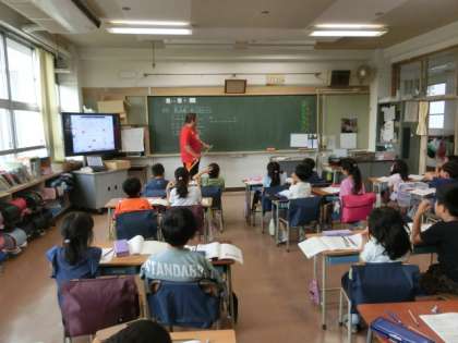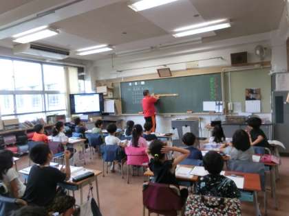 1組の授業は算数です。数直線の学習です。数直線から数を読み取る学習です。