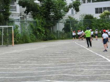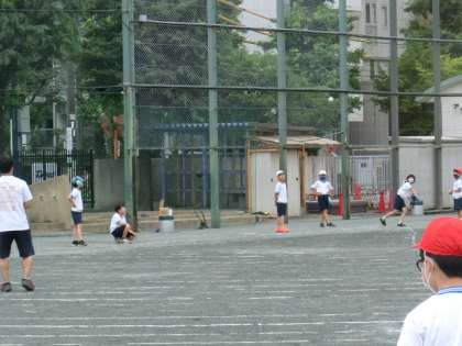 ソフトボールはとても固いです。当たると、とても危ないので、正面に立つことはできません。ボールを拾う人は、とても遠くに立って待っていました。