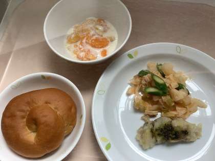 コーヒーパン・魚のバジルソース焼き・イタリアンハムサラダ・フルーツヨーグルト