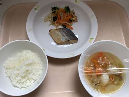 ごはん・うずら卵の中華スープ・魚の西京焼き・野菜の辛子あえ