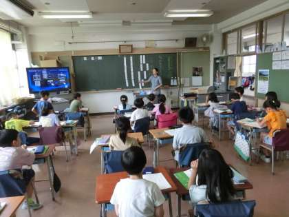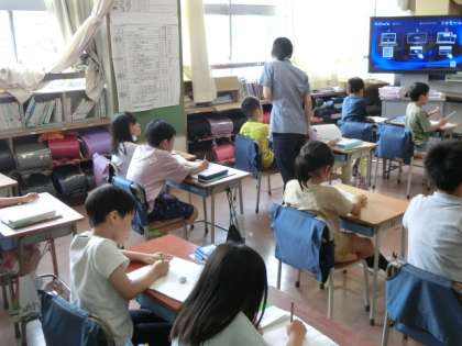 「だれが」「なにを」「どのように」「どうした」かを記入して文章をつくります。「どのように」に当たる部分の文章が大切です。子どもたちは、文章をつくることを楽しんでいました。