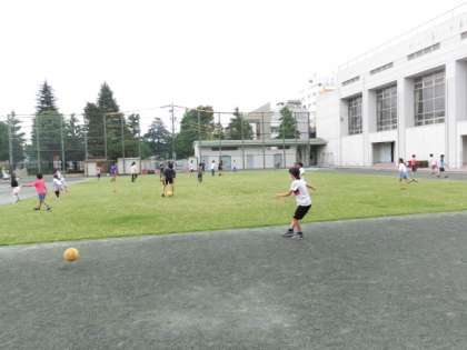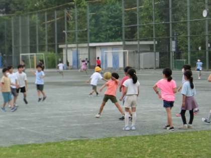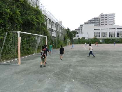 子どもたちは元気に遊んでいます。遊んでいる子どもたちは、みんな額にあせをかいています。水分補給はしっかりとやってほしいです。