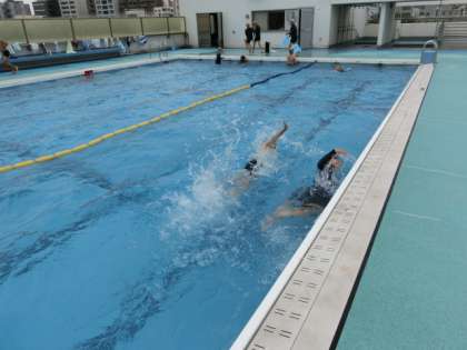 6年生はプールで水泳の授業です。