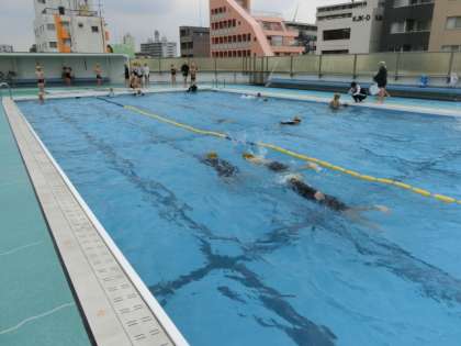 各コースに分かれて練習をしていました。さすが6年生です。泳ぎが力強いです。少しアドバイスをしてあげると、それを意識してしっかりと泳ぎます。泳ぎがどんどんよくなる6年生です。