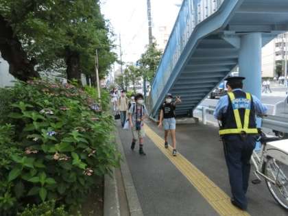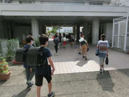 子どもたちが登校してきました。蒸し暑い朝ですが子どもたちは元気です。