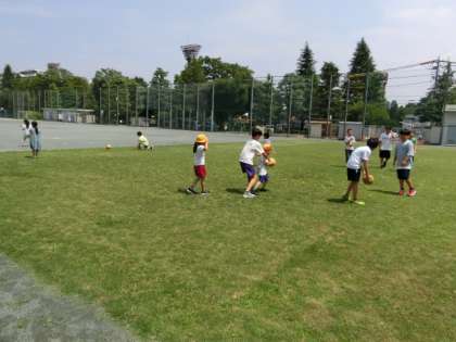 6年生が、1年生と遊んでいます。見ていて、とても微笑ましいです。