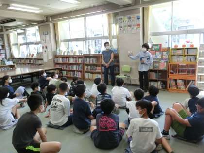 「すばなしの会」の方々は、本の読み聞かせをしてくださるのではなく、物語をすべて暗記し、子どもたちを見ながらお話をしてくださいます。子どもたちは、その迫力あるお話に聴き入っていました。