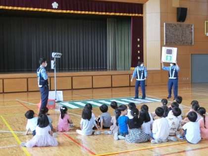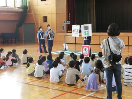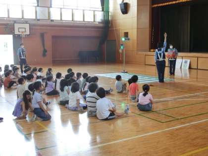 子どもたちは、警察の方のお話をとても真剣に聞いていました。