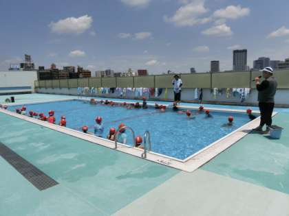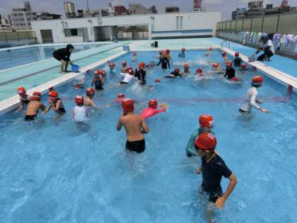 今日はとても蒸し暑いです。水の中の子どもたちは、とても気持ちよさそうです。