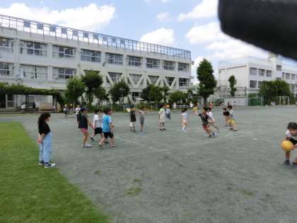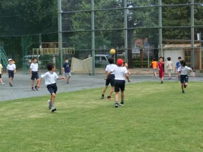 ボール遊び、おにごっこ、竹馬、一輪車で遊んでいます。遊んでいると、暑さを忘れてしまいます。遊びに夢中になりすぎて、熱中症になるのだけは、注意しないといけませんね。