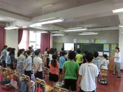 2組の授業は音楽です。みんなで歌を歌っていました。1番は、列ごとに分けて歌っていましたが、2番は全員で歌いました。少人数の時は、恥ずかしかったのか、少し声が小さく感じましたが、全員で歌った時には、みんなの声が響いていました。