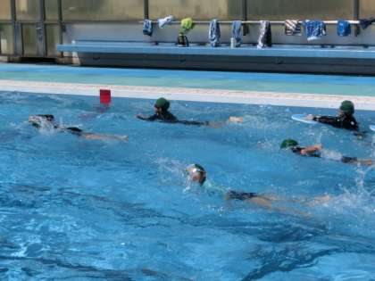 5年生は、1時間目2時間目は水泳でした。とても暑いのでプールに入っている人は、とても気持ちよさそうです。休憩のときにプールから上がった子どもたちは、「気持ちいい。」と、声をあげていました。水慣れのあと、気持ちよさそうに泳ぎの練習をしていました。