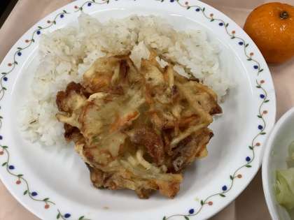 かき揚げ丼・野菜のごま風味・冷凍みかん