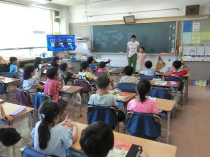 2組の教室をのぞいていると、生活の授業を少し早目に切り上げ、話し合いをするようです。クラスの人から提案があったようです。