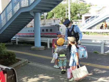今日も池尻交番のおまわりさんが、子どもたちを見守ってくれていました。