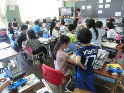 どのように電池を配置したら、モーターが早く回るかを考えています。いくつか出てきた案をキットを使って試します。