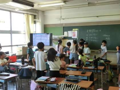 1組の教室をのぞいていると、明日の美術鑑賞教室のバスの席わりを決めていました。美術鑑賞教室に向かう先は、砧公園にある世田谷美術館です。そんなに距離があるわけではありませんが、子どもはたちにとって、バスの席は重要なでしょう。