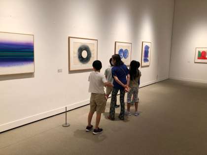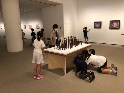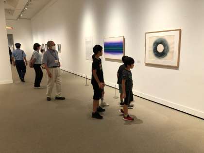 作品を鑑賞するときに、観る角度を変えて観ている人たちもいます。