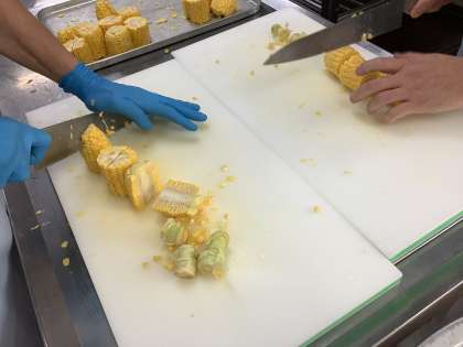 とうもろこしは2年生が皮むきをしています。